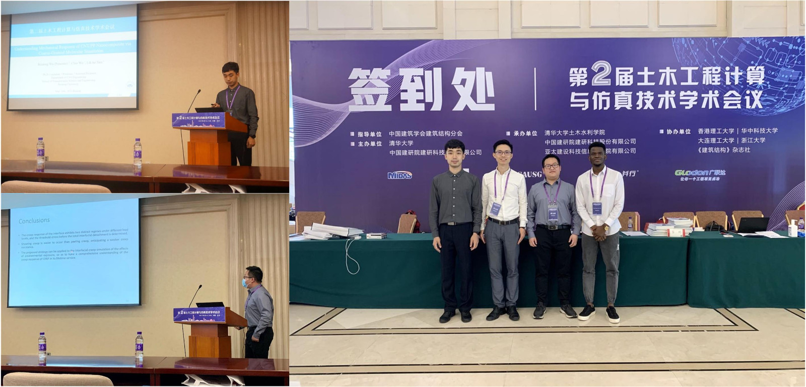 博士研究生吴瑞东和研究助理蒋金桥参加了在中国北京举办的第二届土木工程计算与仿真技术学术会议,并分别作了题为 “Mechanical response and mechanism analysis of carbon nanotube/polypropylene nanocomposite” 和 “Molecular dynamics investigation on failure mechanism of fiber/matrix interface in harsh environments” 的学术报告。