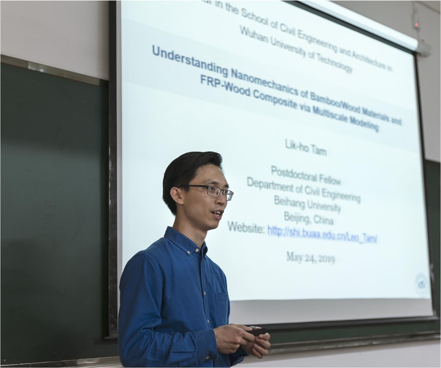 谭博士受邀在武汉理工大学土木工程与建筑学院作了题为“基于多尺度模拟的木材/竹材以及 FRP-木材复合结构的微观力学研究”的学术报告。